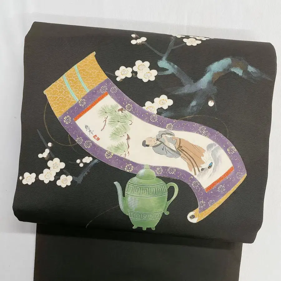 나고야 오비 매화 소나무 작은 꽃 패 모양 항아리 모양 기모노 101t