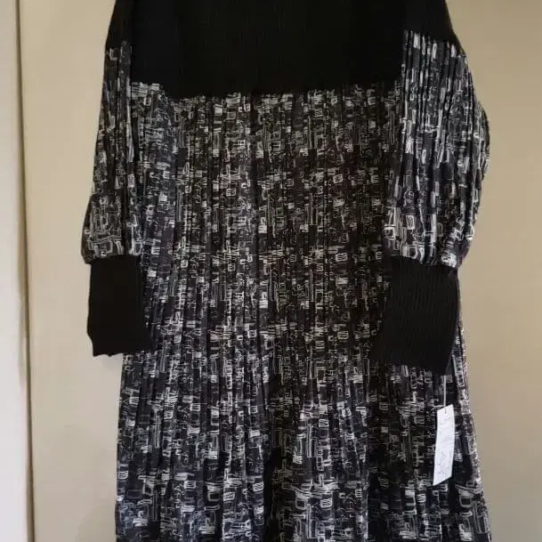 조리펨 니트 도킹 프린트 플리츠 원피스 블랙