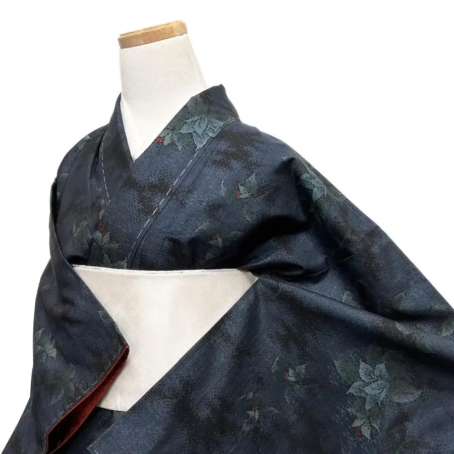 남색 오시마 명주의 바탕에 섬세하게 짜인 노을과 꽃 무늬, 리프 문양이 세련된 디자인의 한 벌입니다.