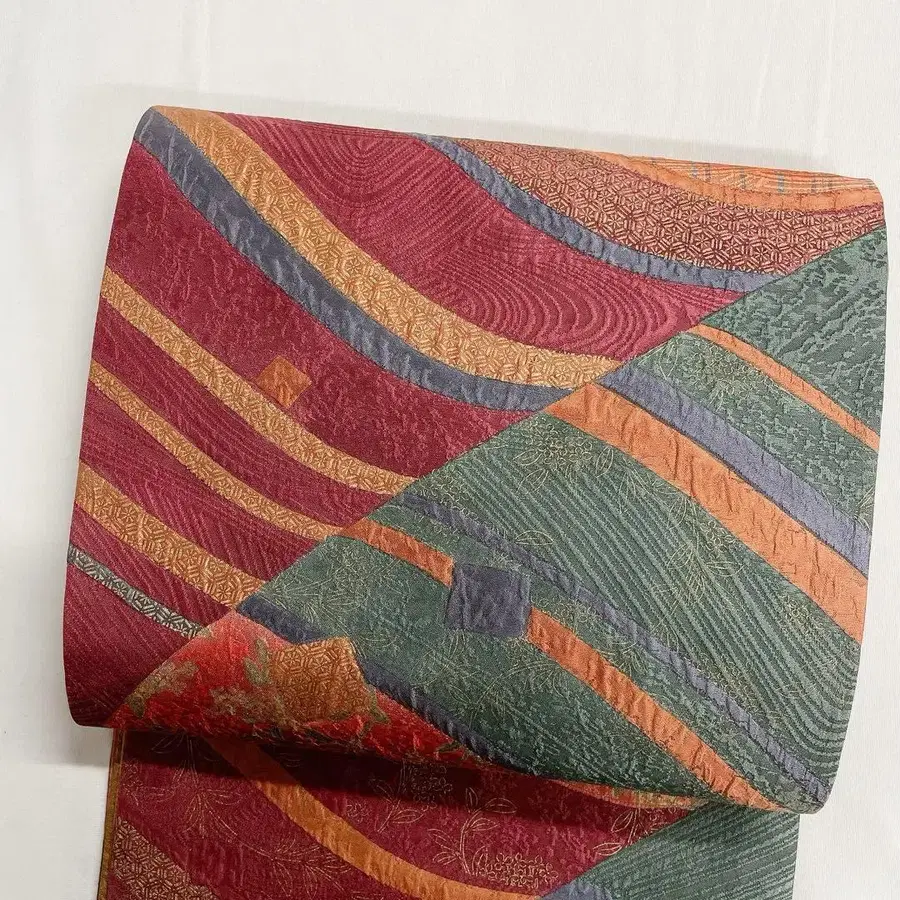 리버서블 유선 작은 꽃 꽃 무늬 후쿠로 오비 기모노 101t