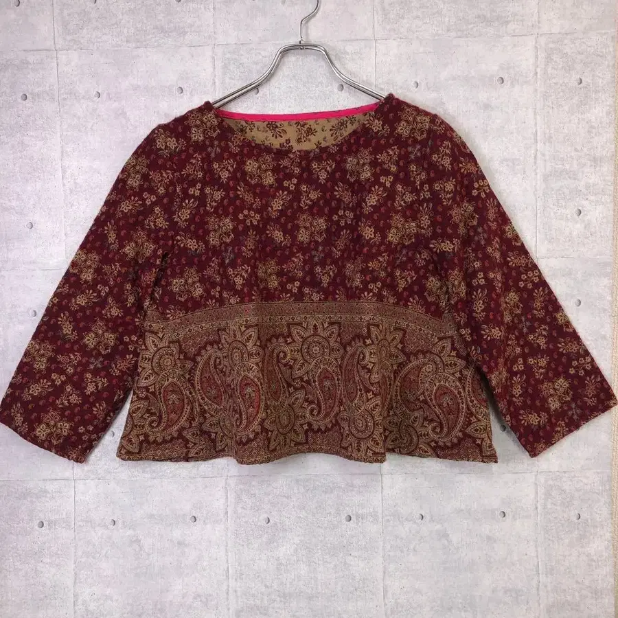 00's 인도산 구제 의류 페이즐리 무늬 크롭 7부 소매 니트탑