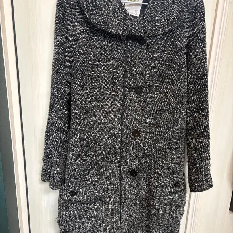 롱 코트 블랙 화이트 믹스 38 사이즈