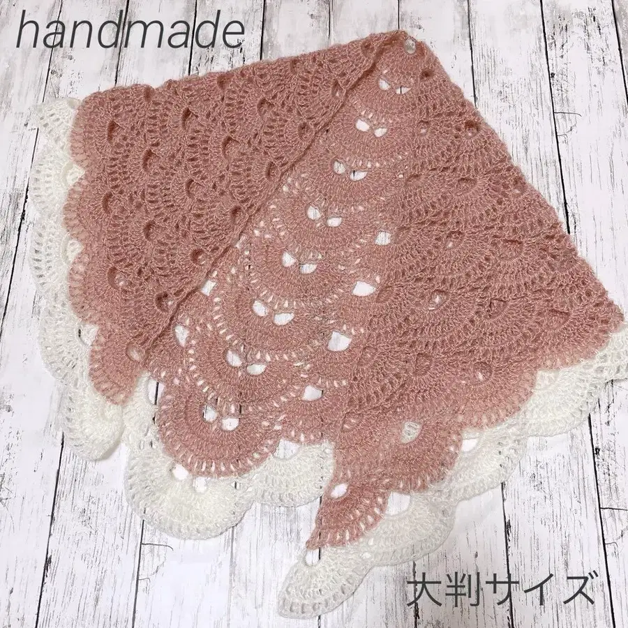 삼각형 숄 스톨 대형 사이즈 (더스티 핑크 x 화이트)