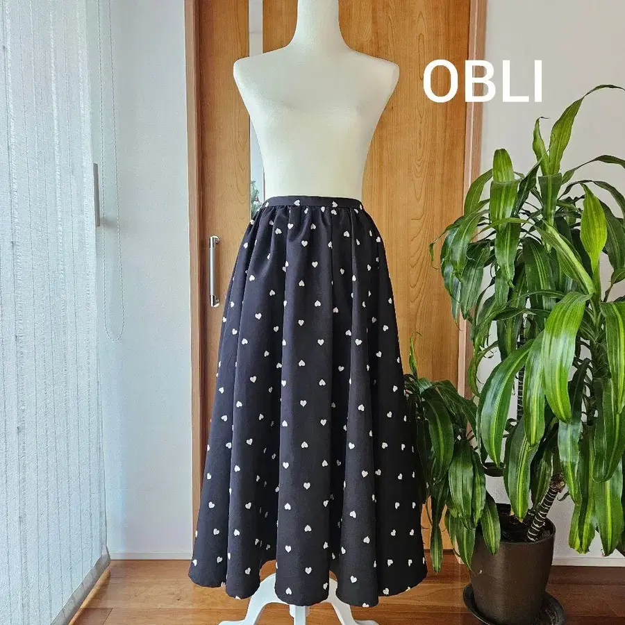 OBLI 하트 무늬 플레어 롱 스커트 오블리 허리밴딩