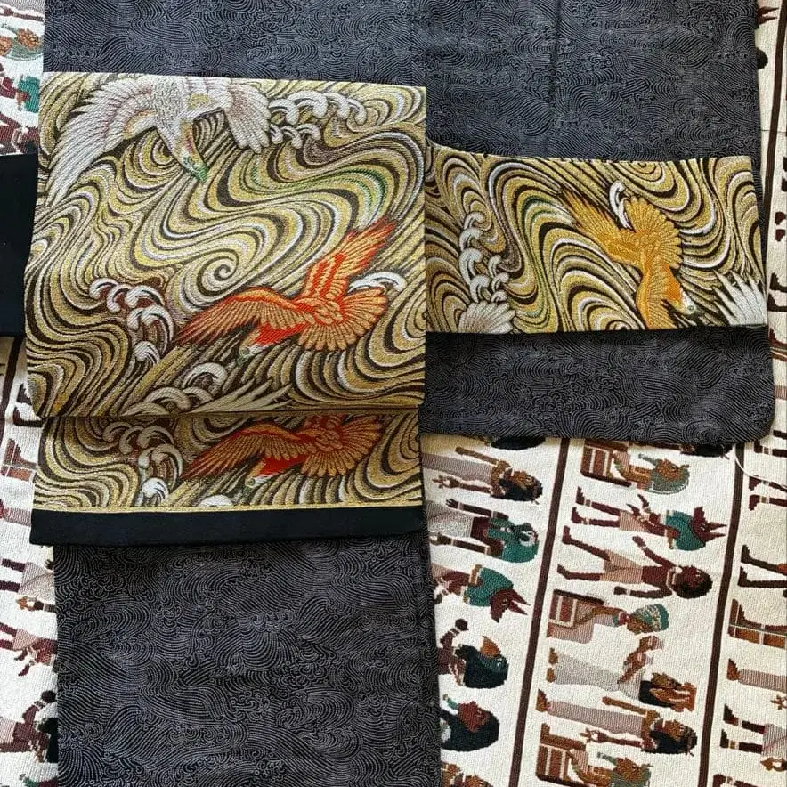 utatane 기모노와 오비 세트 블랙 청해파