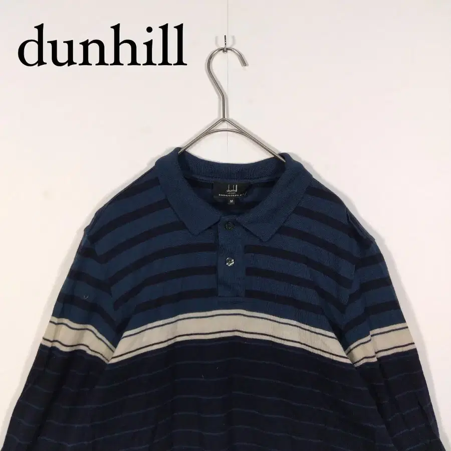 던힐 네이비 보더 긴팔 피케 셔츠 M