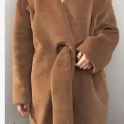 무루아 브라운 플리스 벨트 부착 롱 코트 M