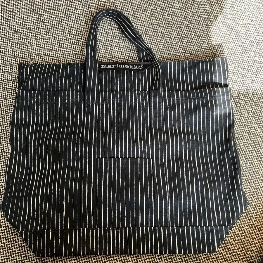 marimekko 네이비와 화이트 스트라이프 빅 토트백