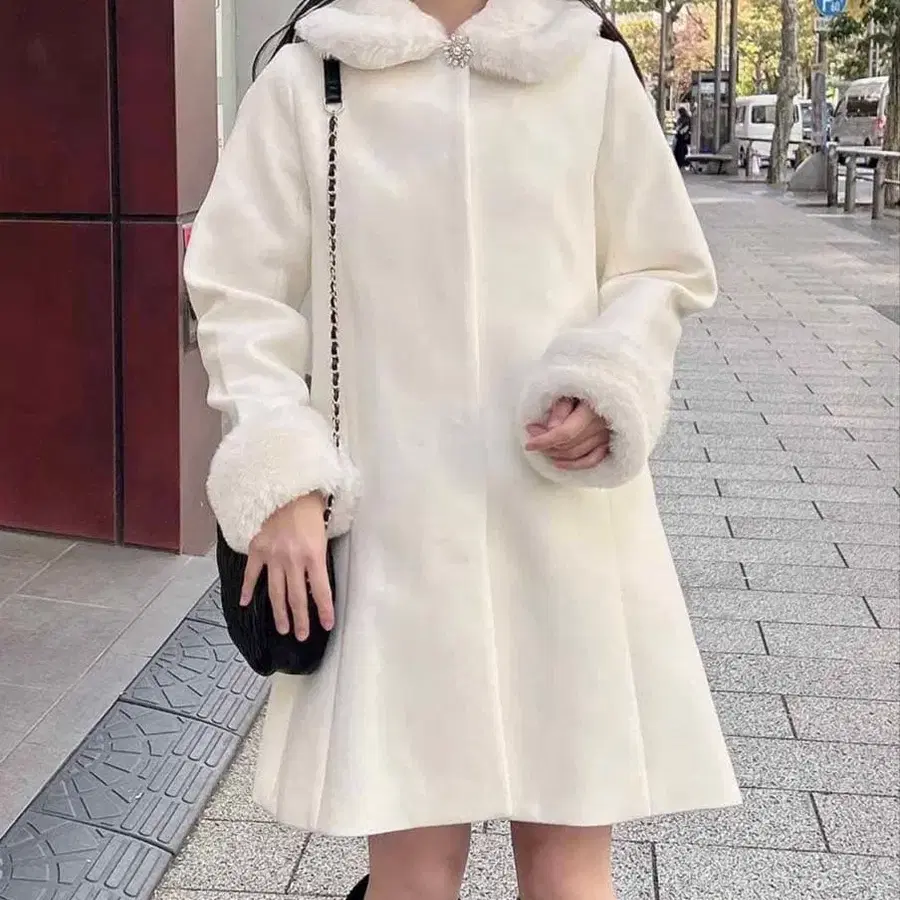 퍼가 달린 화이트 롱 코트