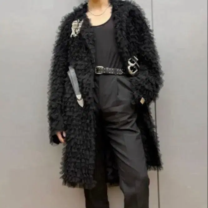 라울 착용 전국 완판 아이템 el conductor FRILL DOUBLE BREASTED COAT 2025 AW 튤 소재를 하나하나 리본 모양으로 만든 후 프릴로 가공하여 전체에 봉제한 코트입니다. 펄과 크리스탈 콤비 장식 단추를 가슴과 허리에 배치하여 장식성이 높은 한 벌입니다. 프론트 포켓은 좌우에 하나씩 있으며, 이너를 껴입어도 마지막에 걸칠 수 있는 73cm의 충분한 가슴 너비입니다. QUALITY OUTER FABRIC: 100% POLYESTER TULLE: 100% POLYESTER LINING: 100% CUPRO 색상 : BLACK SIZE 4 : 기장 107cm / 어깨 너비 66cm / 가슴 너비 73cm / 소매 길이 61cm 반품, 환불, 할인 불가 el conductor 온라인 SHOP에서 구매 미사용 새상품 모르는 점이 있으면 질문해주세요. 색상 - 블랙 계열 얼룩, 찢김, 냄새 등 - 없음