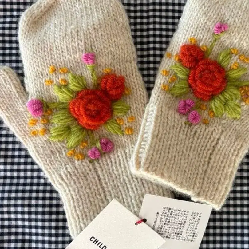 CHILD WOMAN 네팔 핸드 니트 자수 미튼 별주