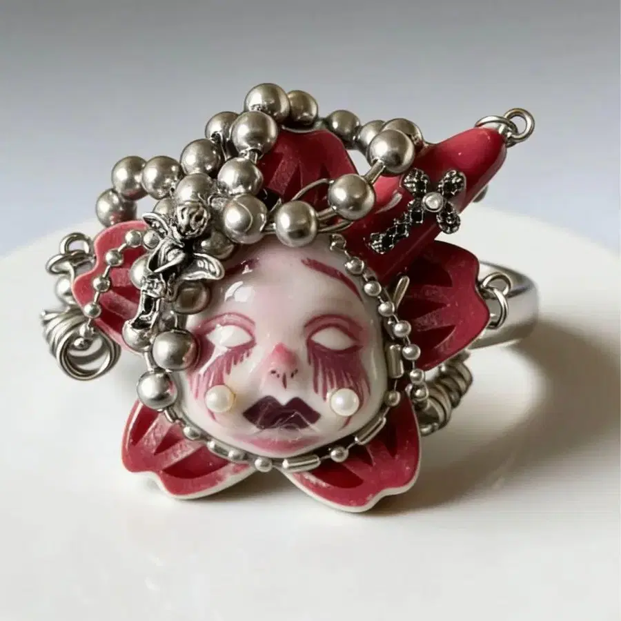 유니크 디자인 빨간색 꽃 반지