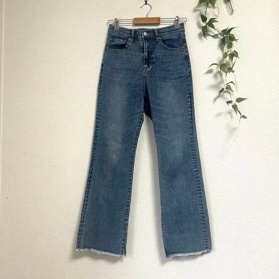 새상품급 플레어 데님 팬츠 인디고 프린지 밑단