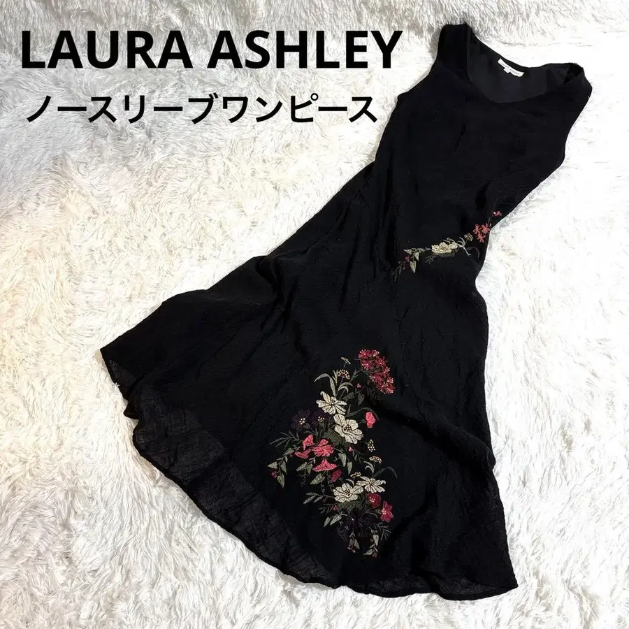 로라 애슐리 슬리브리스 원피스 울 꽃무늬 자수 스트레치