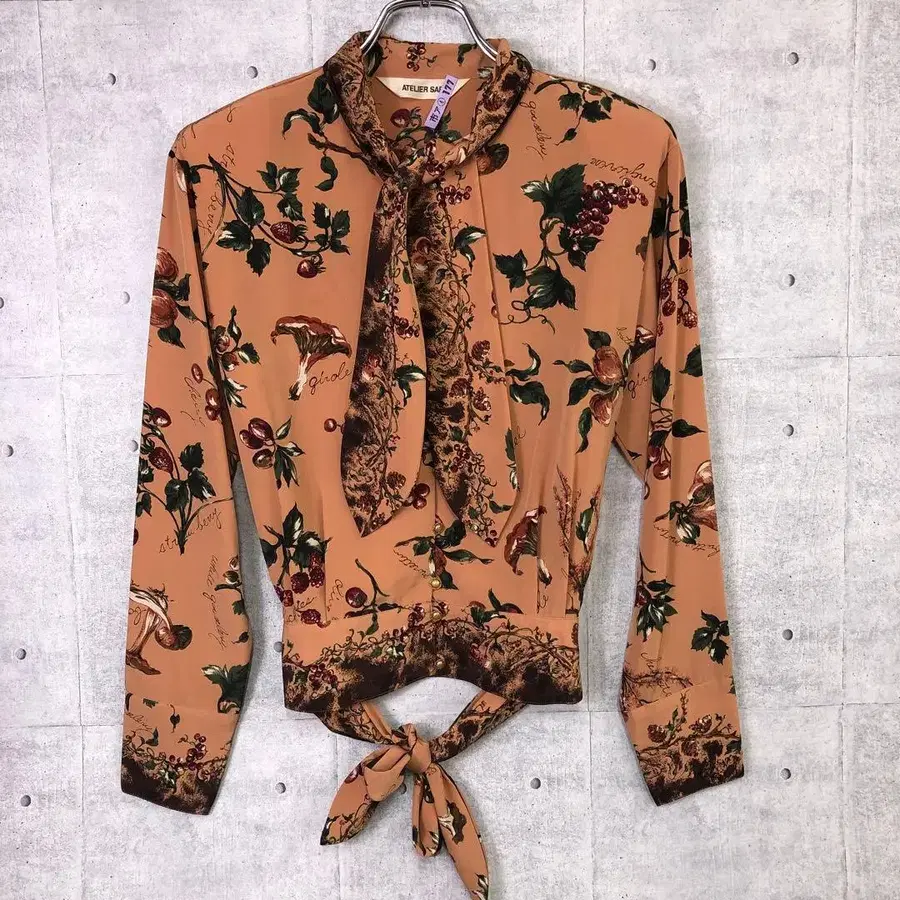 ATELIER SAB 일본제 구제 의류 과일 버섯 패턴 보타이 블라우스