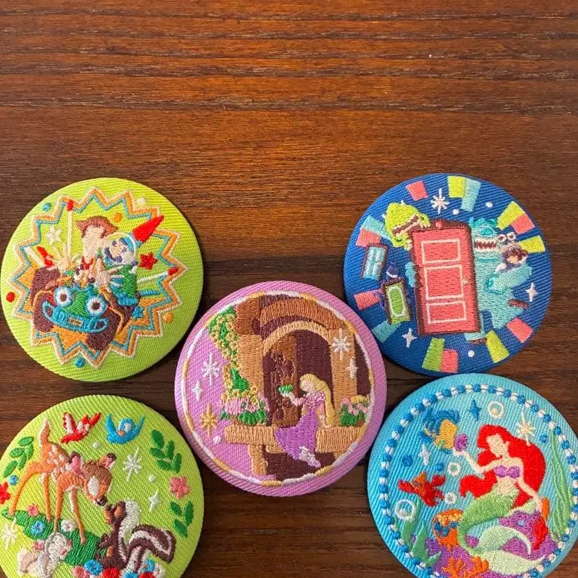 디즈니 자수 캔뱃지 5개 세트 & 비스킷