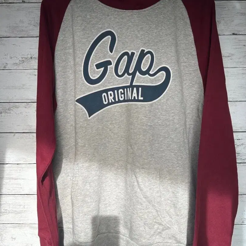 새상품급 거의 미사용 Gap 후드 부착 후드티 그레이/버건디 속기모