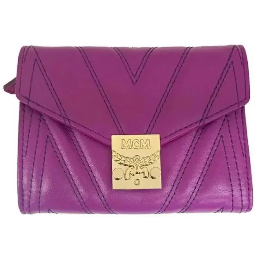 MCM 퍼플 가죽 3단 폴더형 지갑