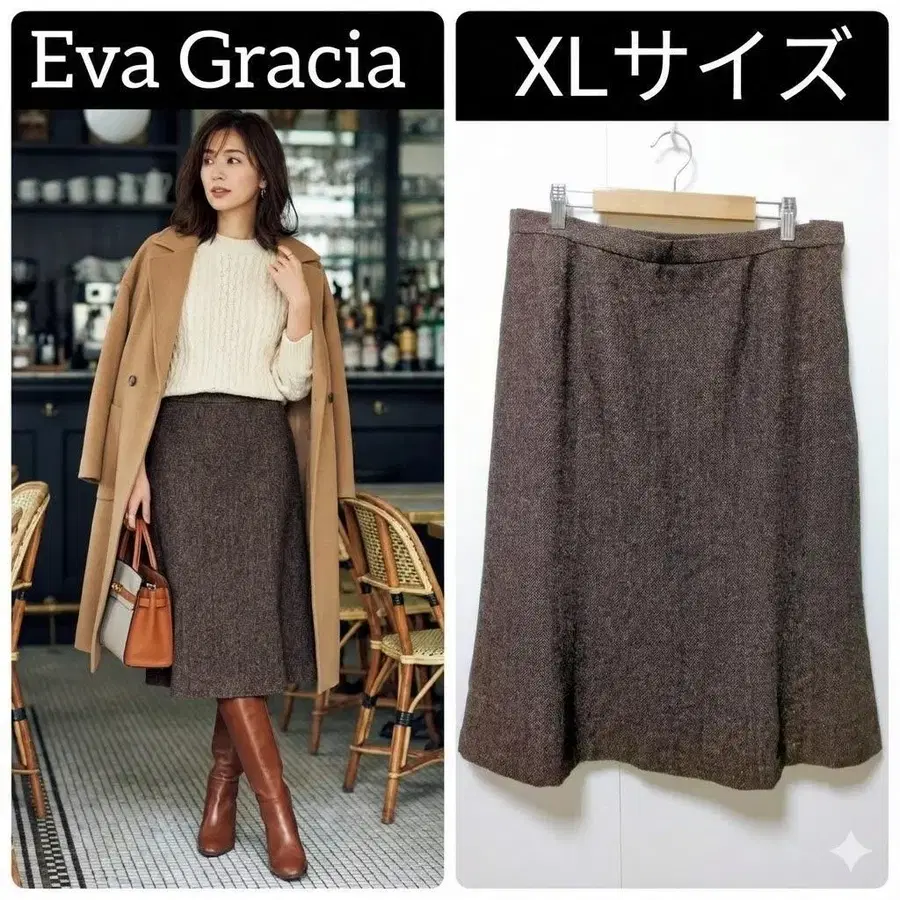 차분한 다크 브라운 색감이 멋진, Eva Gracia의 트위드 스커트입니다.
