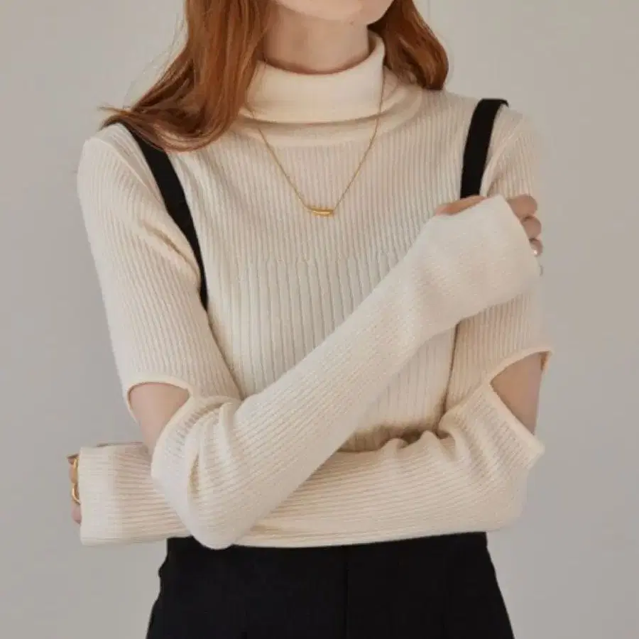 hinari 컷 아웃 리브 터틀넥 니트