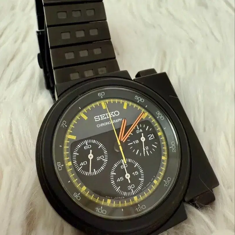 SEIKO (세이코) x 지우지아로 디자인의 한정판 크로노그래프입니다. 2015년 11월에 새상품으로 구매했지만, 실제 사용 횟수는 몇 회 정도로 적으며 그 이후에는 보관만 했습니다. 2025년 7월에 시계점에서 배터리 교체를 완료했기 때문에 현재는 문제없이 작동하고 있습니다. 본 상품은 세계 한정 3000개 중 No.2373 / 3000 입니다 (뒷면 커버에 각인 있음). ⸻ [ 상태에 대하여 ] 방풍 (유리), 다이얼, 케이스 전면에는 눈에 띄는 흠집 없이 전반적으로 매우 양호한 상태입니다. 뒷면 커버 (피부에 닿는 부분)에는 사용 및 노후화에 따른 **미세한 스크래치 (미세한 흠집)**가 있습니다. ※ 사진을 확인해 주세요. 팔찌를 포함하여 일반적인 사용에는 전혀 문제가 없습니다. ⸻ [ 부속품 ] 본체만 있습니다. ※ 상자, 보증서, 설명서는 없습니다. (구매 당시에는 컬렉션 목적이 아니라 실용으로 구매했기 때문에 보관하지 않았습니다.) ⸻ [ 기타 ] 한정판 모델이지만, 어디까지나 [사용하기 위한 시계]로서 소중히 다뤄온 개체입니다. 중고품임을 이해하신 후 구매 부탁드립니다. 상태에 대해 궁금한 점이 있다면 언제든지 댓글로 문의해 주세요.