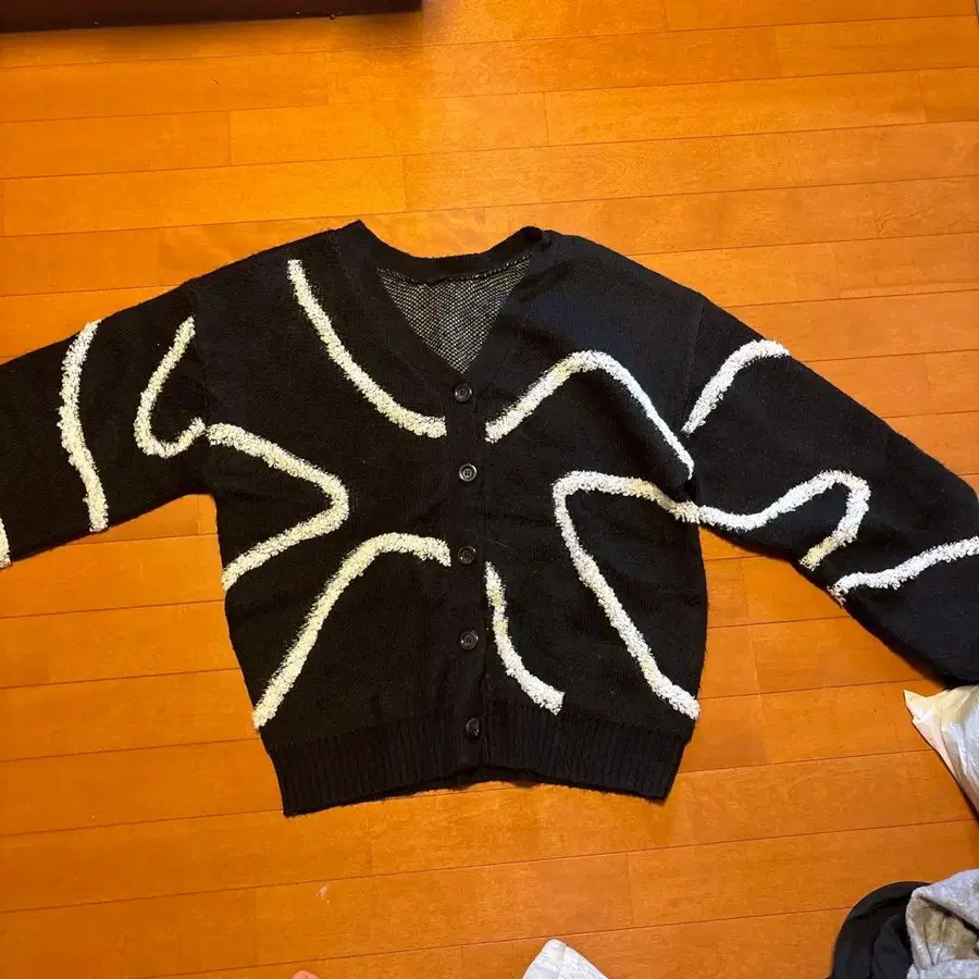 지그재그 무늬 V넥 스웨터 블랙/화이트