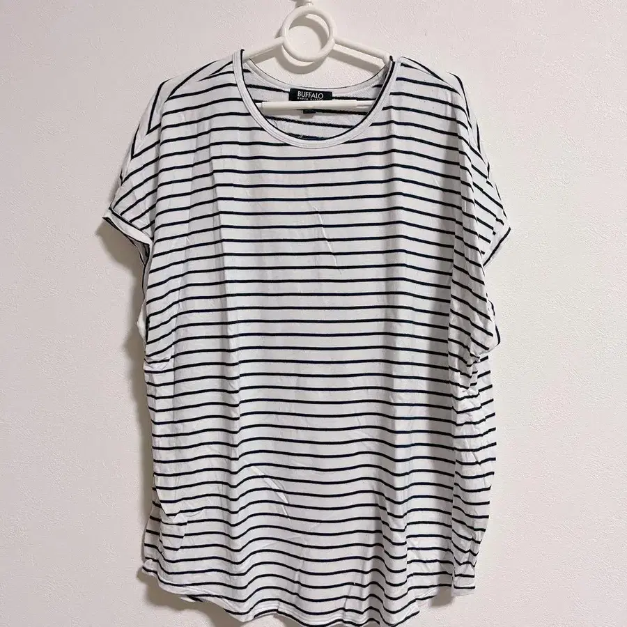 자동 번역되었어요. 원문보기화이트와 네이비 스트라이프 디자인의 크루넥 T셔츠, 넉넉한 실루엣이 특징입니다.
