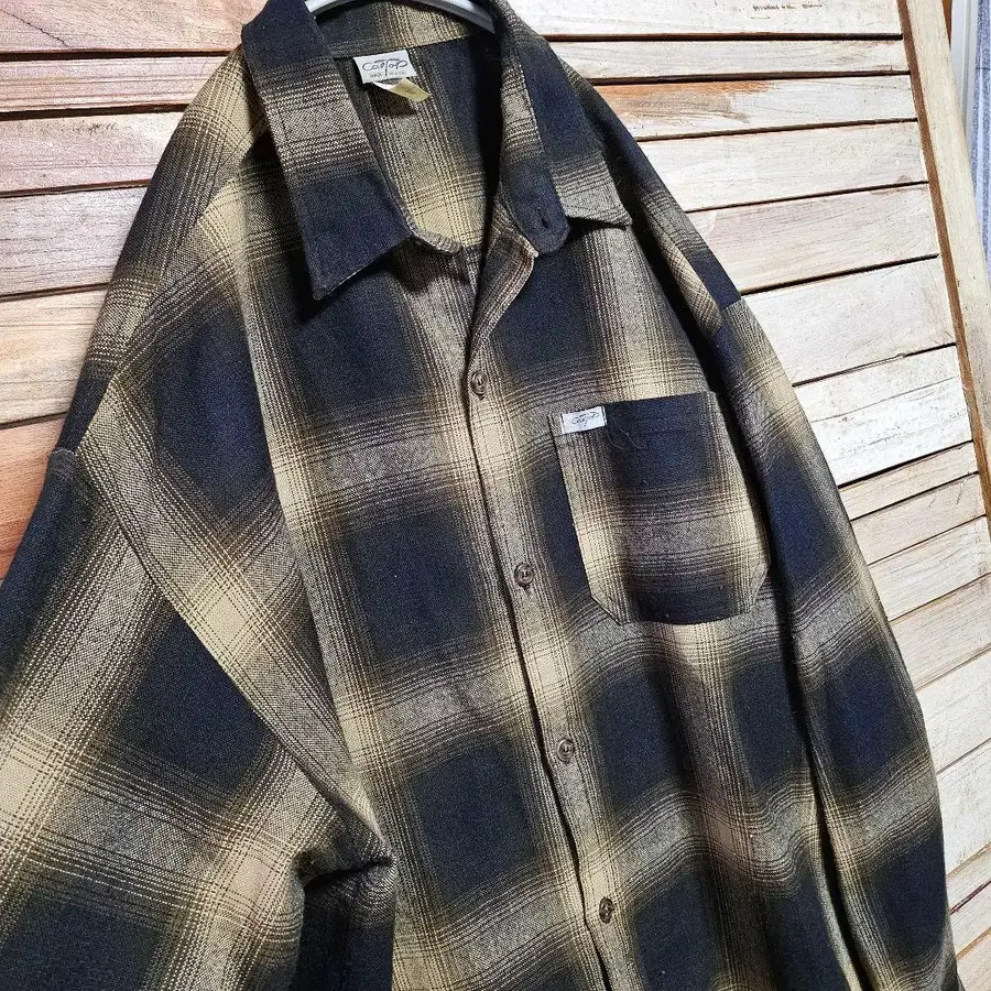 CALTOP 옴브레 체크 셔츠 플란넬 셔츠 긴팔 브라운 2XL