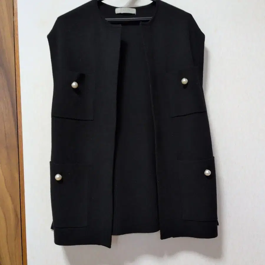 블랙 니트 베스트 S~M 사이즈 펄 버튼 포함