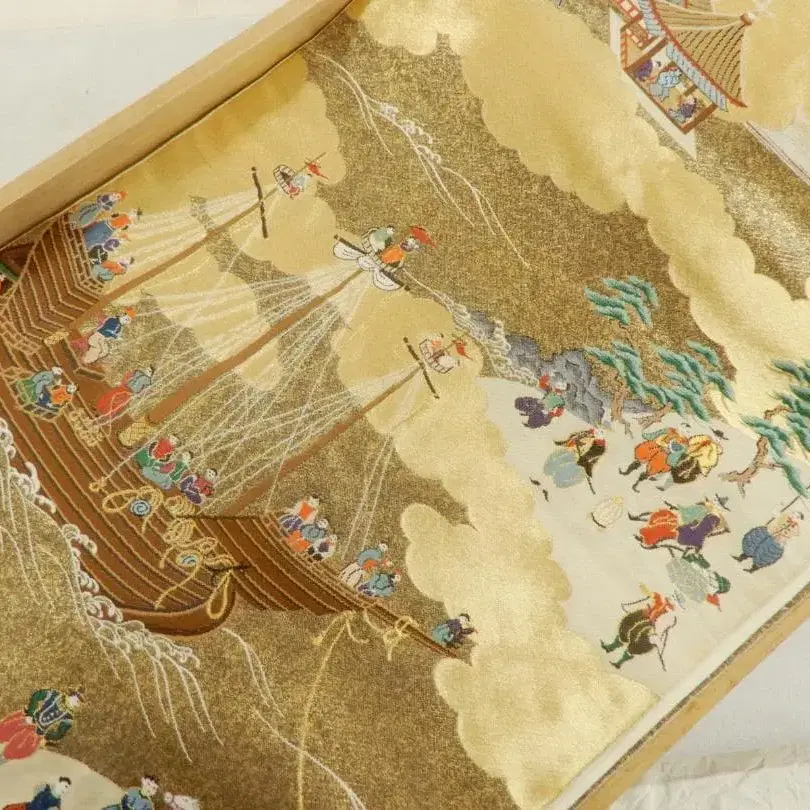 순수 실크 니시진 비단 남만인 도래도 후쿠로 오비