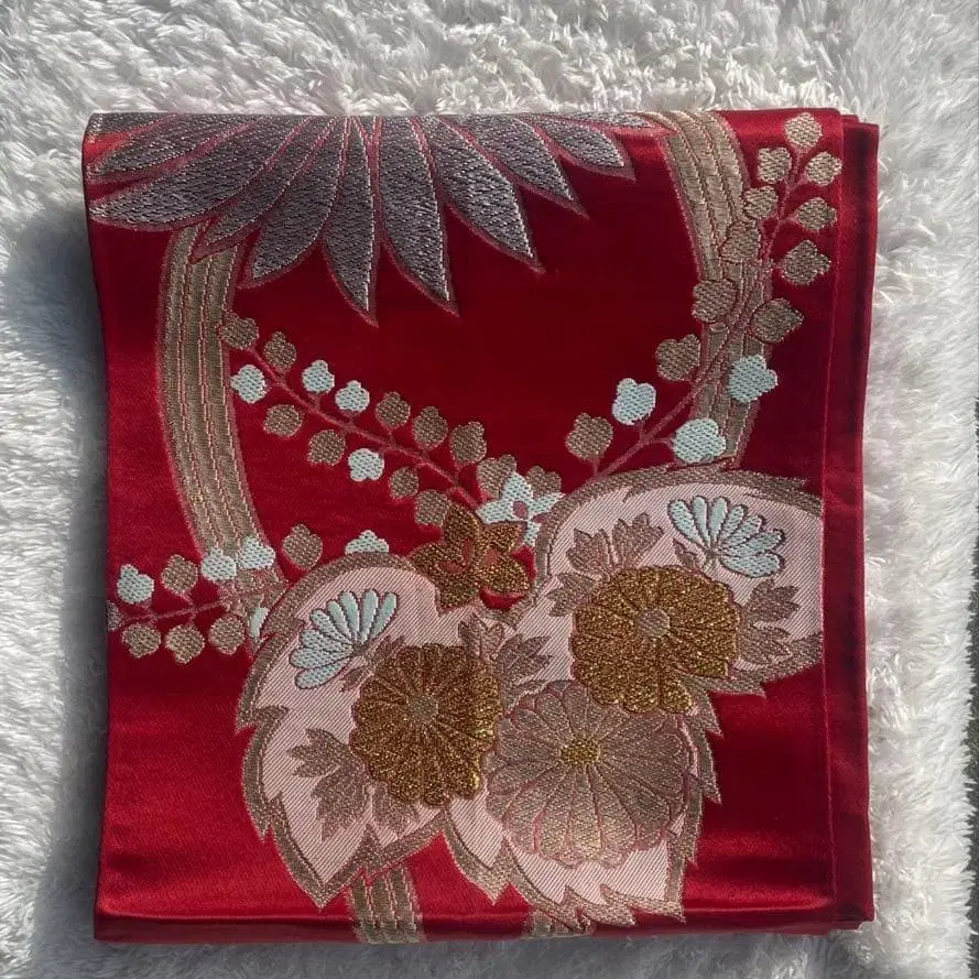 빨간색 꽃무늬 자수 후쿠로 오비