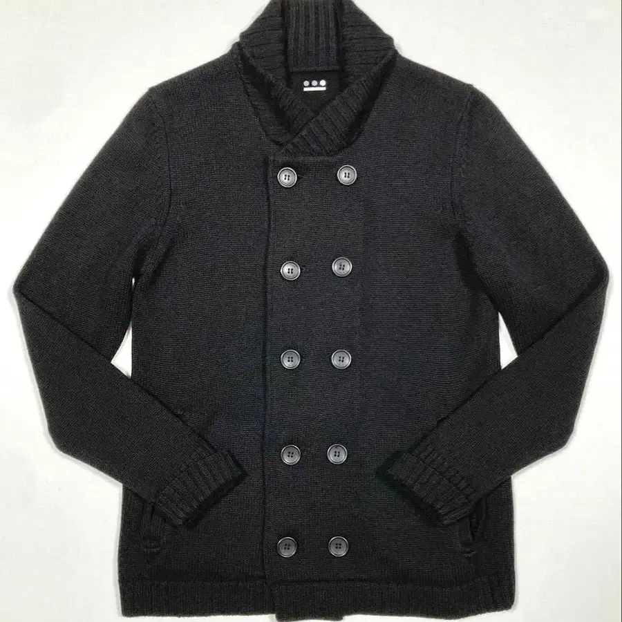 이번에 판매하는 상품은 리브 칼라로 절개된, 더블 브레스티드 사양의 미들 게이지 니트 자켓입니다.