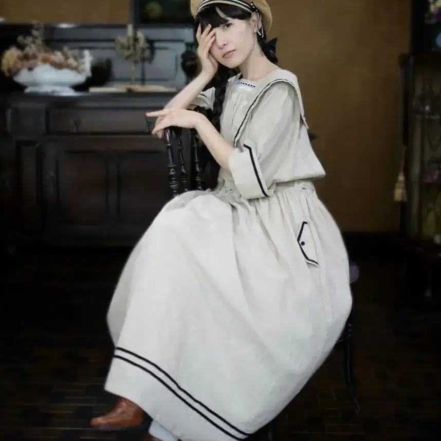 [착용 1회] 세라핌 SERAPHIM 클래식 세일러 드레스 베이지