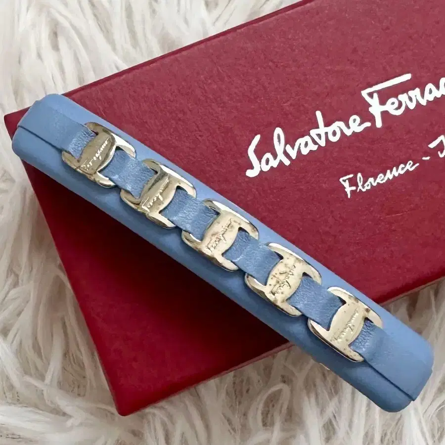 살바토레 페라가모 미니 바레타 헤어 액세서리 블루 계열 골드
