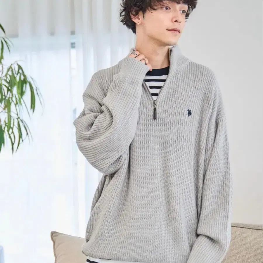 U.S POLO ASSN/WEGO 하프 지퍼 니트 스웨터
