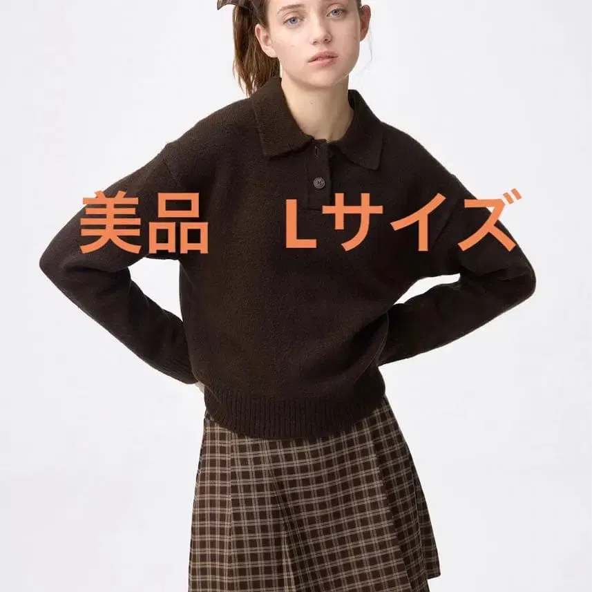 GU 퍼프 니트 피케 셔츠 L 브라운 새상품급