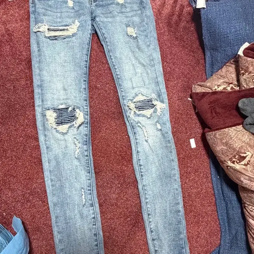 mnml 28 데미지 가공 스키니 데님 라이트 블루