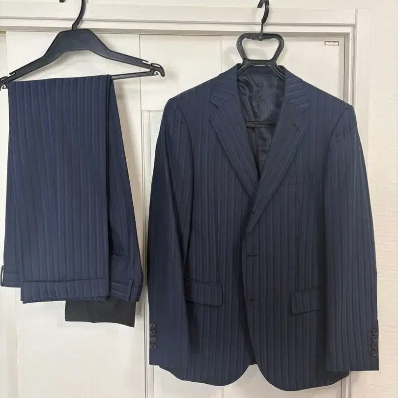 TAKAQ 네이비 스트라이프 비즈니스 정장 L