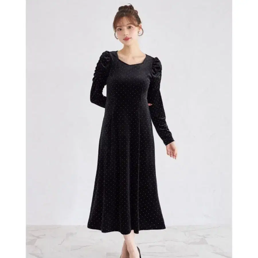 [ 미사용 새상품 ] tocco 스톤 부착 파워 숄더 컷 벨로아 원피스