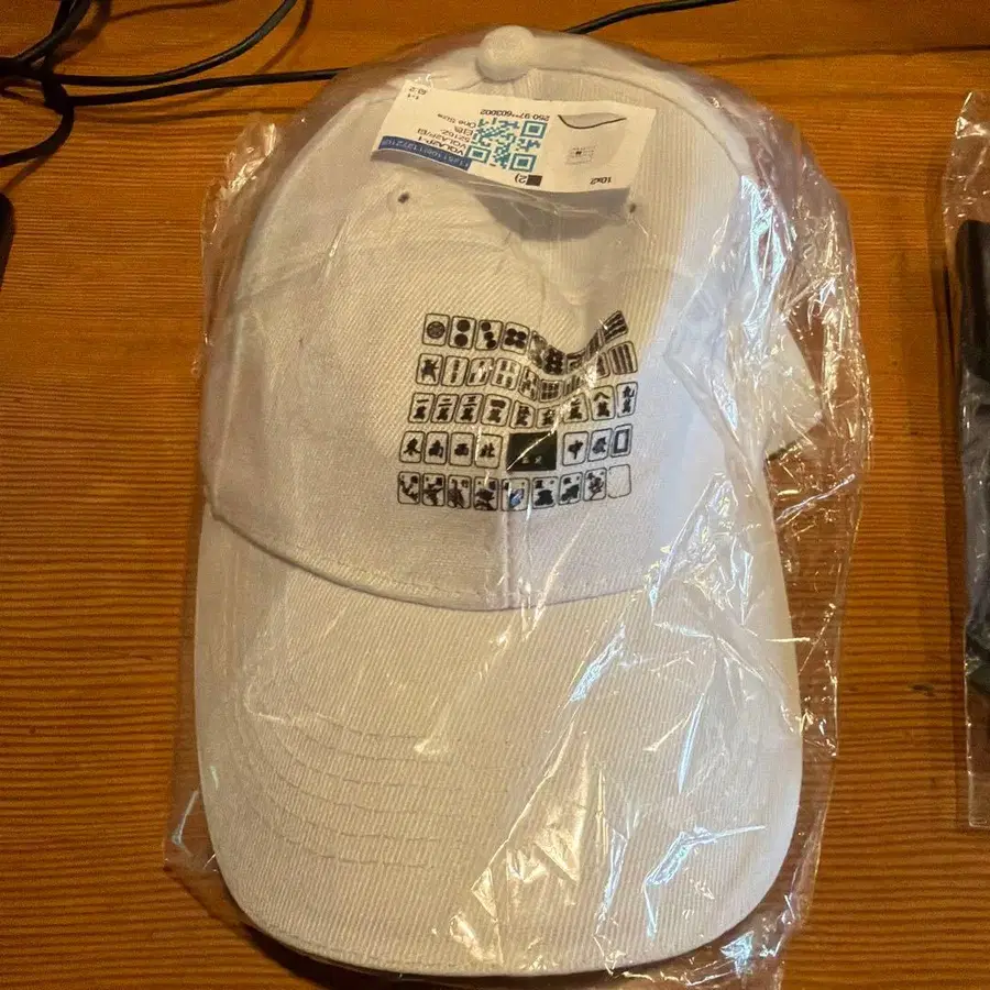 화이트 프린트 디자인 캡 블랙 넥타이
