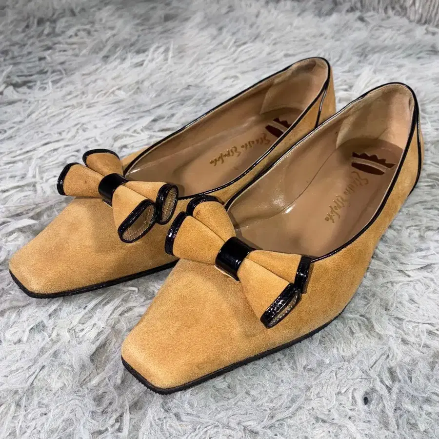 ERNESTO ESPOSITO 플랫 펌프스 리본 스웨이드 스퀘어토