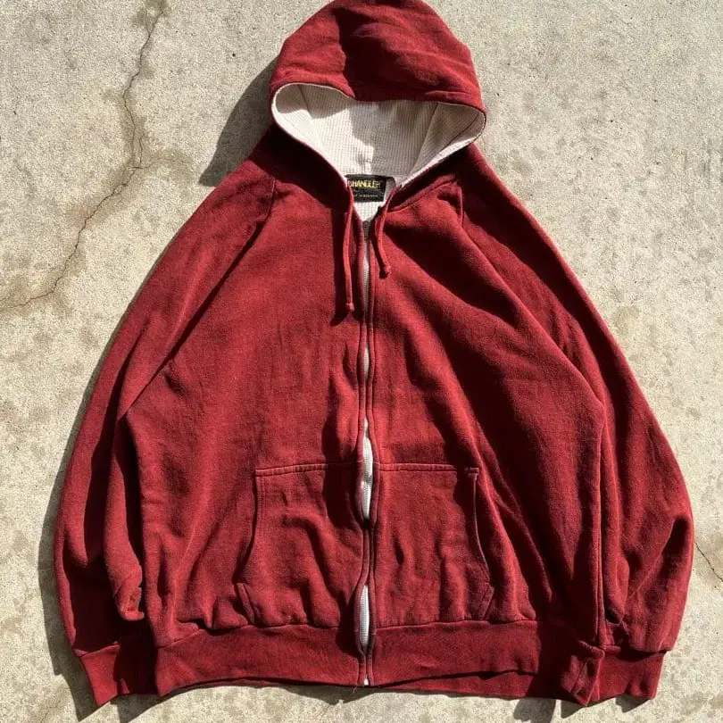 80s 루마니아 후드티 지퍼 후드티 크림슨 빨간색 안감 써멀