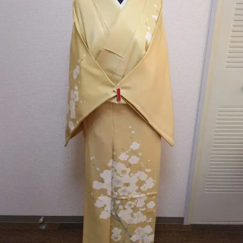 리메이크 소재 옅은 옐로우 컬러 꽃무늬 호몬기 순수 실크
