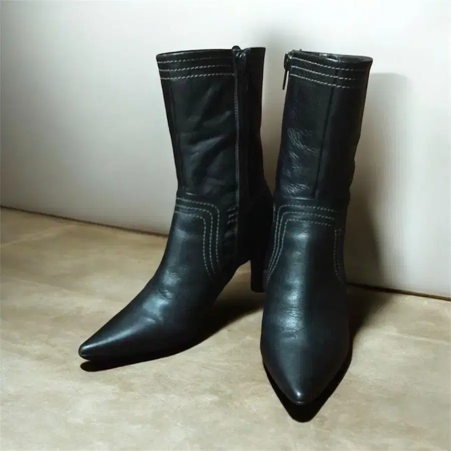 VERA GOMMA 하프 부츠 천연 가죽 블랙 가죽 블랙 35