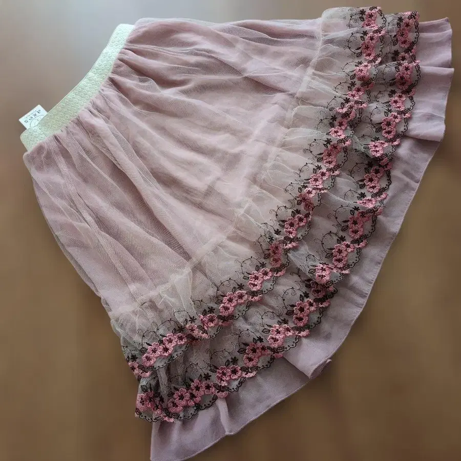 택 포함 미사용 엑시즈팜 핑크 플레어 스커트 튤 자수