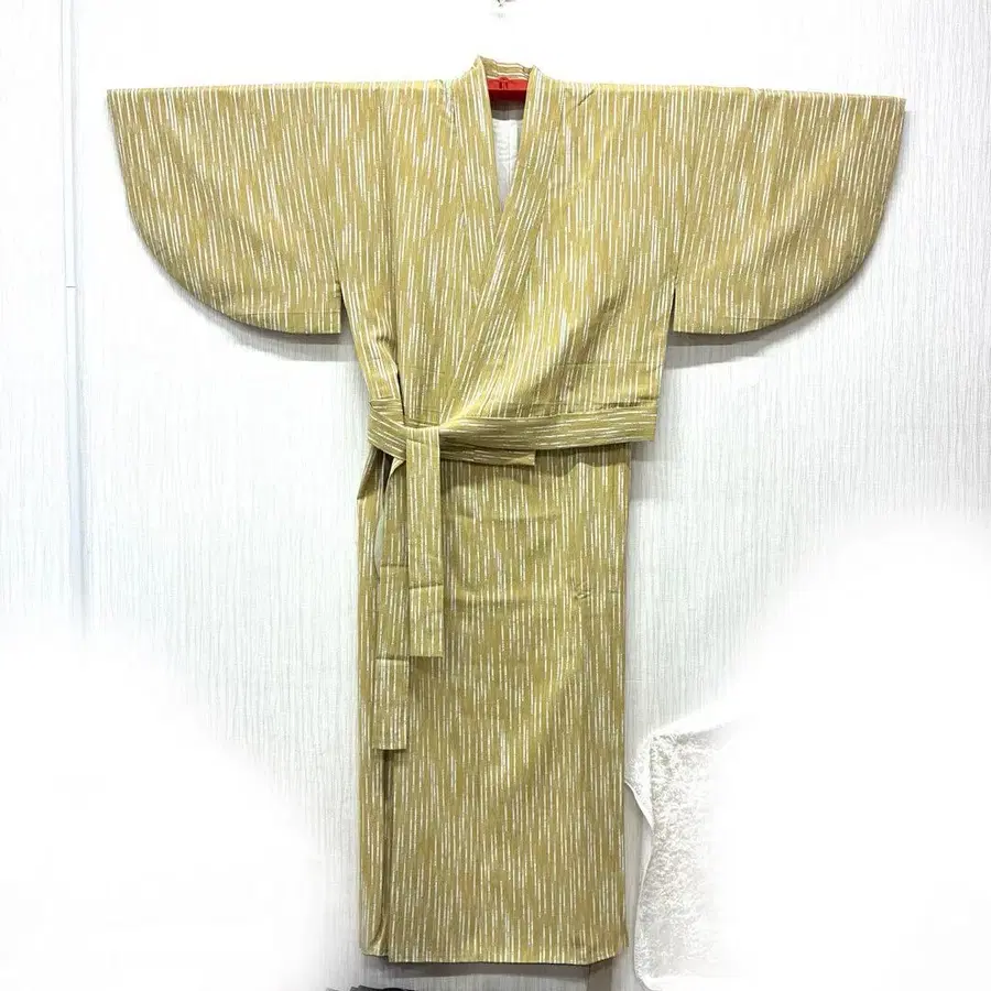투피스 기모노 황토색 세로 줄무늬 코몬 기모노 순수 실크 일본 의류