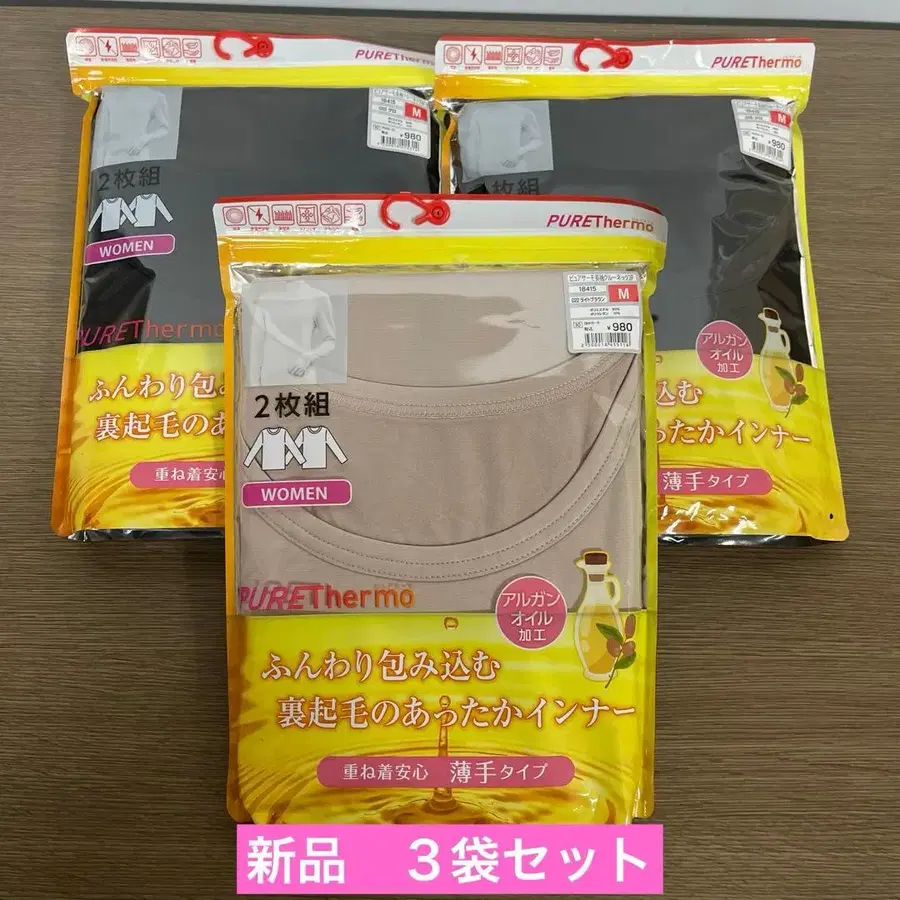 새상품 퓨어 써모 긴팔 크루넥 속기모 이너 3개 세트