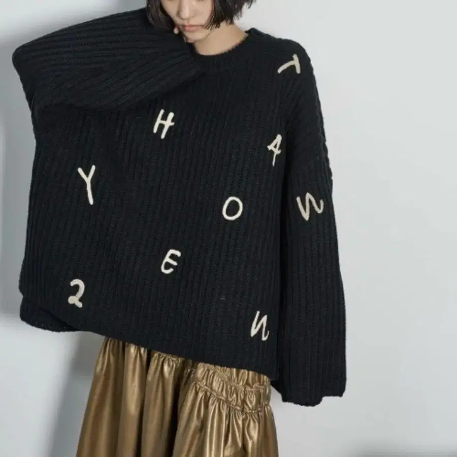 자영 레터링 자수 루즈핏 니트 풀오버 블랙