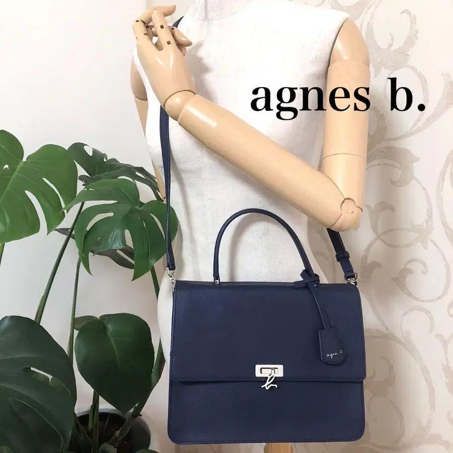 [새상품급] 에네스베 숄더백 가죽 네이비 핸드백 2way