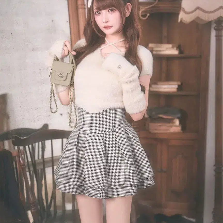 미셸 마카롱 하운드투스 체크 패턴 슬림 레그 스커트